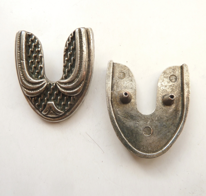 Horned belt tip Curved rivet on belt tip surmounted by horns or tusks.