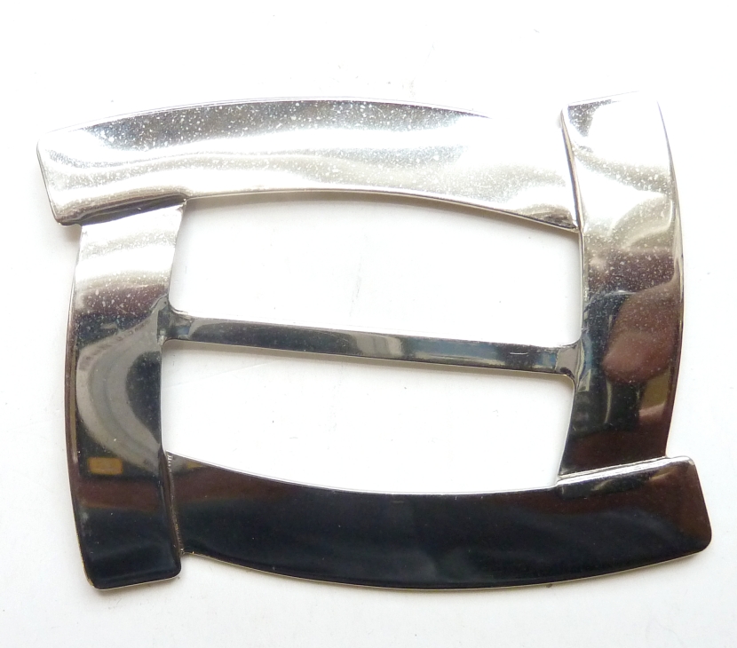 Swollen buckle Bulbous die cast buckle in NP finish.