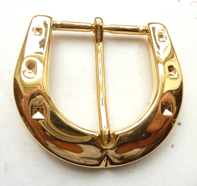 Big buckle Large die cast buckle in shiny Gilt finish.