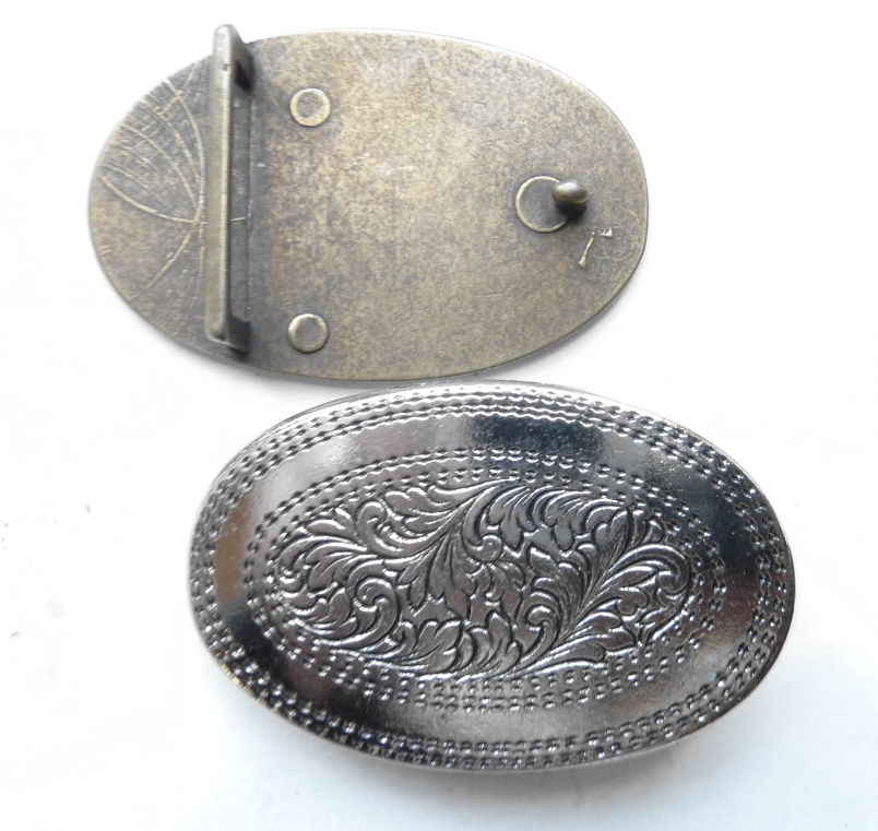 Aged brass buckles Solid cast brass belt buckles in an aged silver / pewter finish.