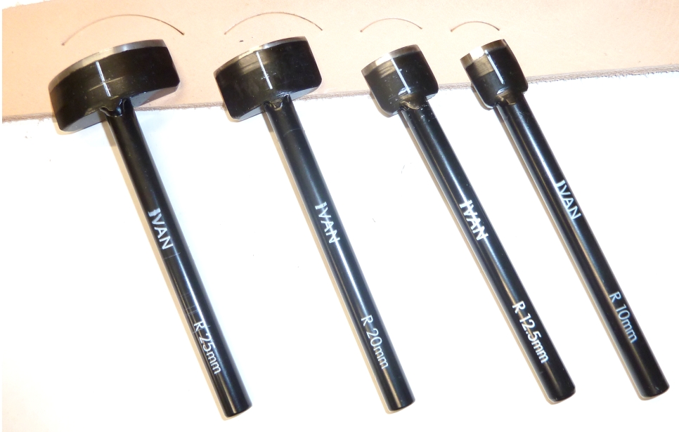Durable clear acrylic template for tracing corners and circles onto leather.