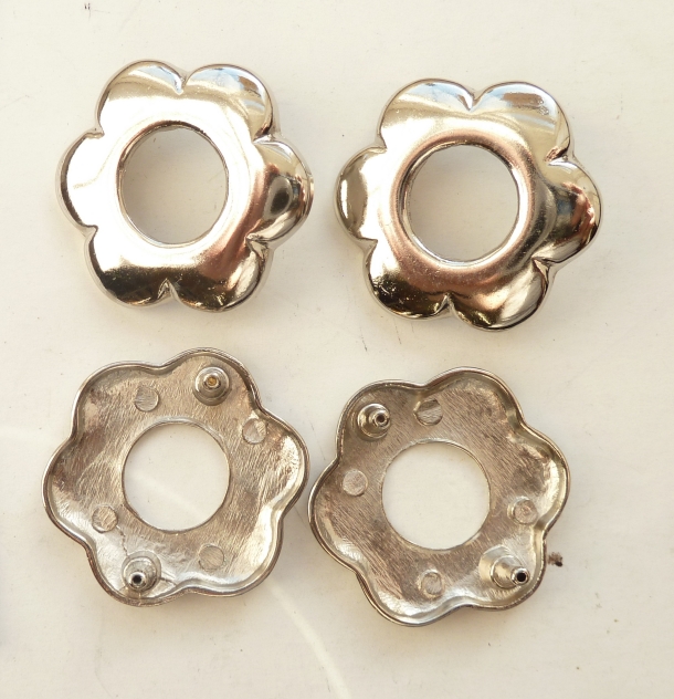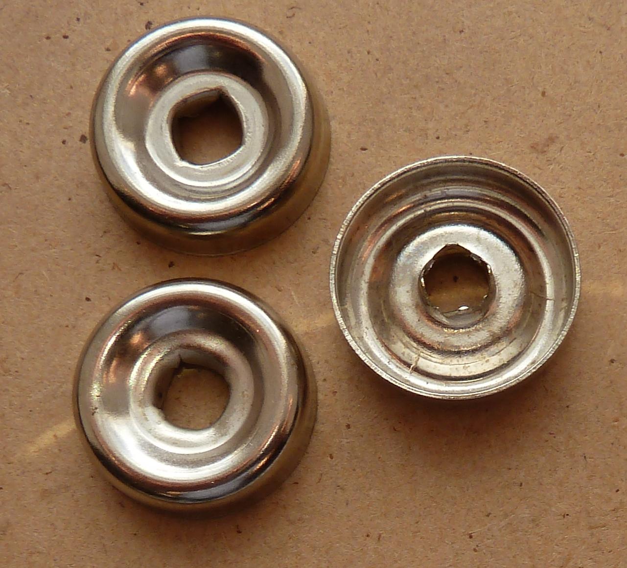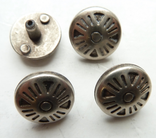 Base metal double rivet on domed fitting with hollow centre in NP finish