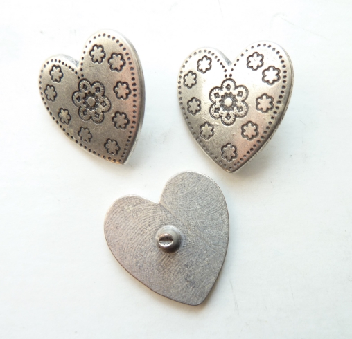 Base metal decorated heart shaped rivet on fitting with pewter finish