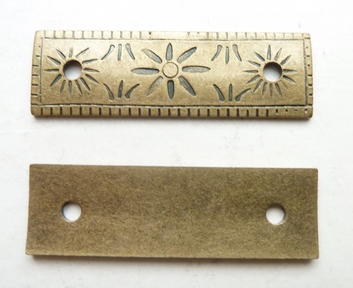 Slightly curved steel fitting with old brass finish.