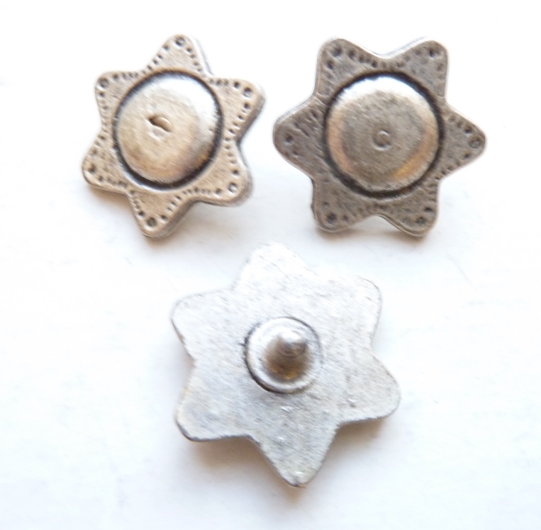 Base metal rivet on boss in pewter finish.