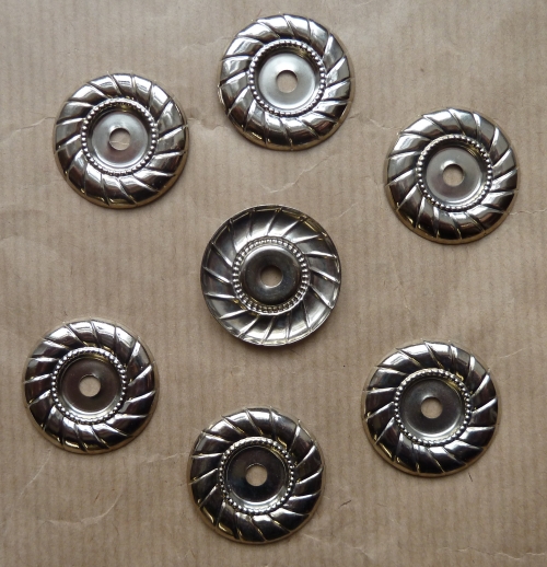 A range of metal fittings to attach to leather armour & scales for additional protection or decoration.