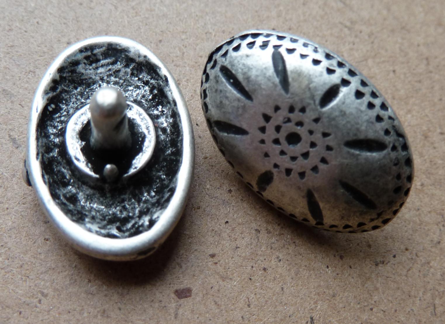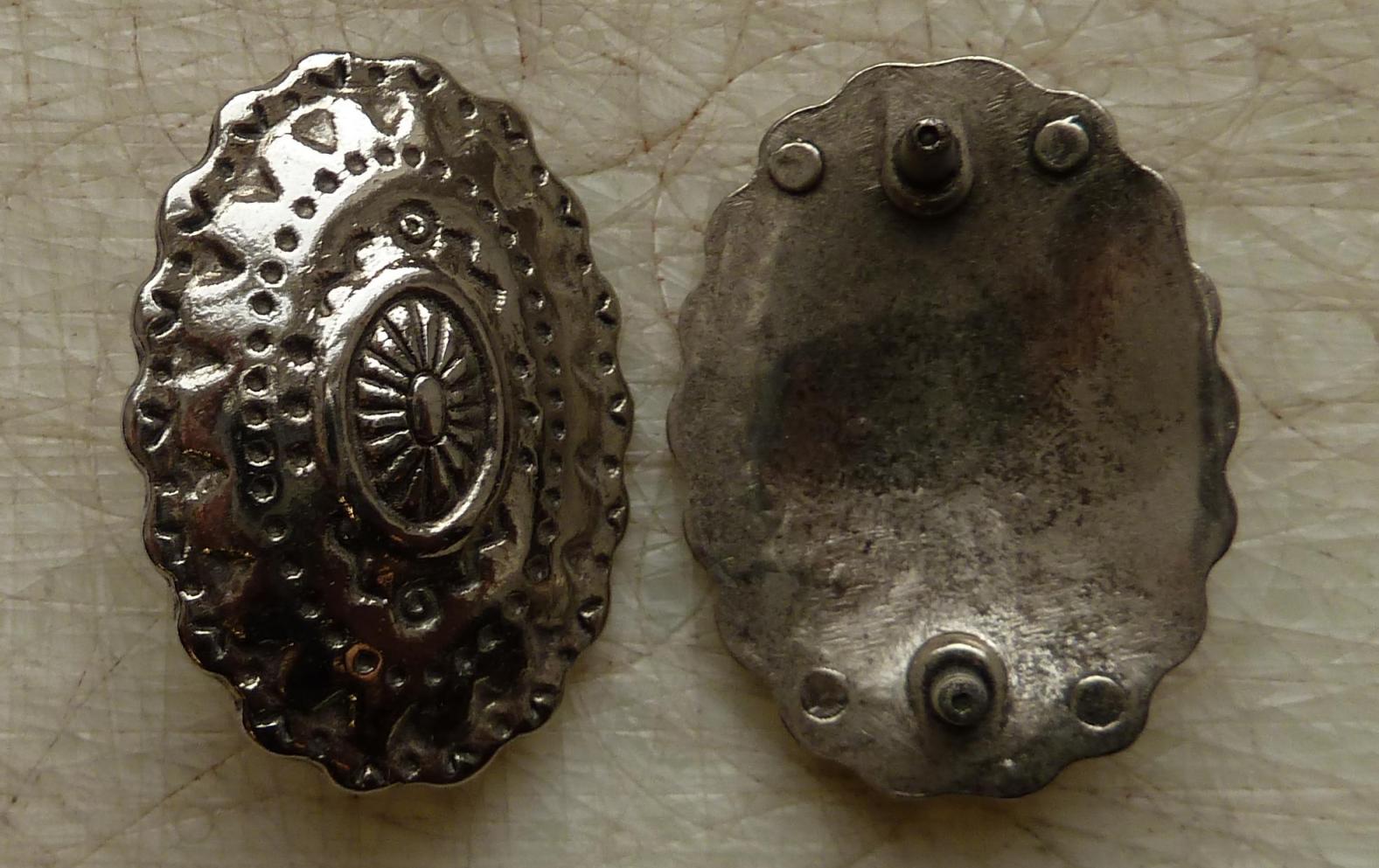Base metal rivet on boss in old pewter finish.