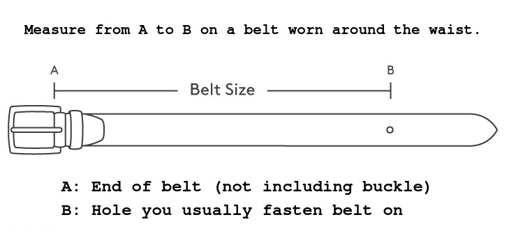 As a rule of thumb for Men's belts this is usually about 2" more than your usual trouser size (so a belt for 34" waist trouser would fasten around 36").