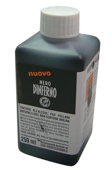 The solution penetrates undyed leather and when the spirit base evaporates this leaves the pigment in the leather.