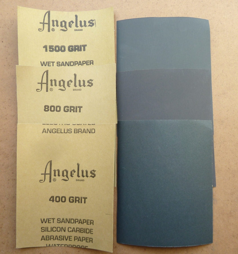 3 pieces of Angelus sand paper - 14 x 11.5 cm in 400, 800 & 1500 grit.