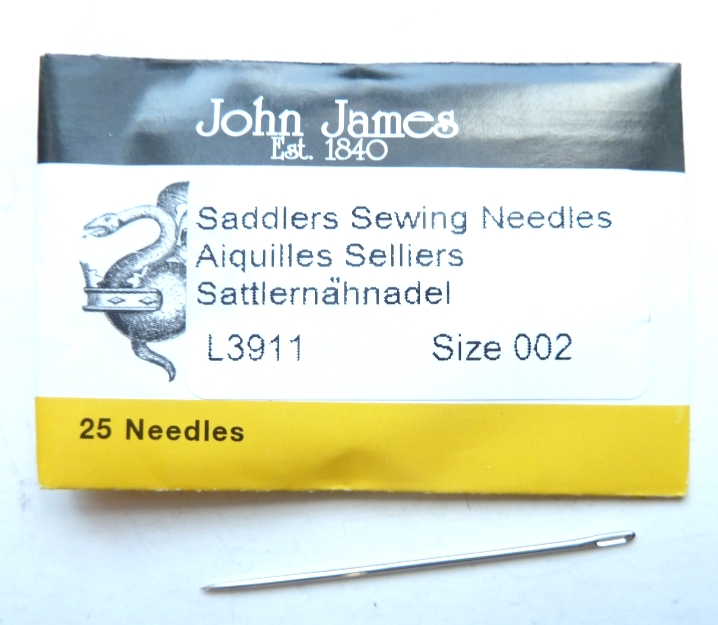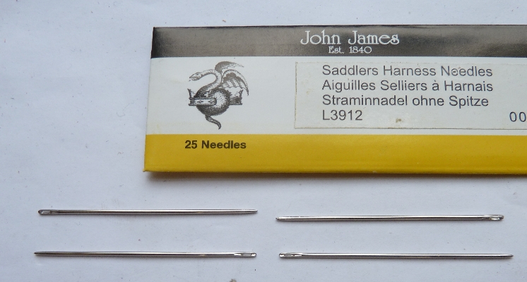 Size 120 / 19 leather needles - these heavy duty needles for stitching leather have a flat side so are suitable for use in domestic (rather than industrial) sewing machines.