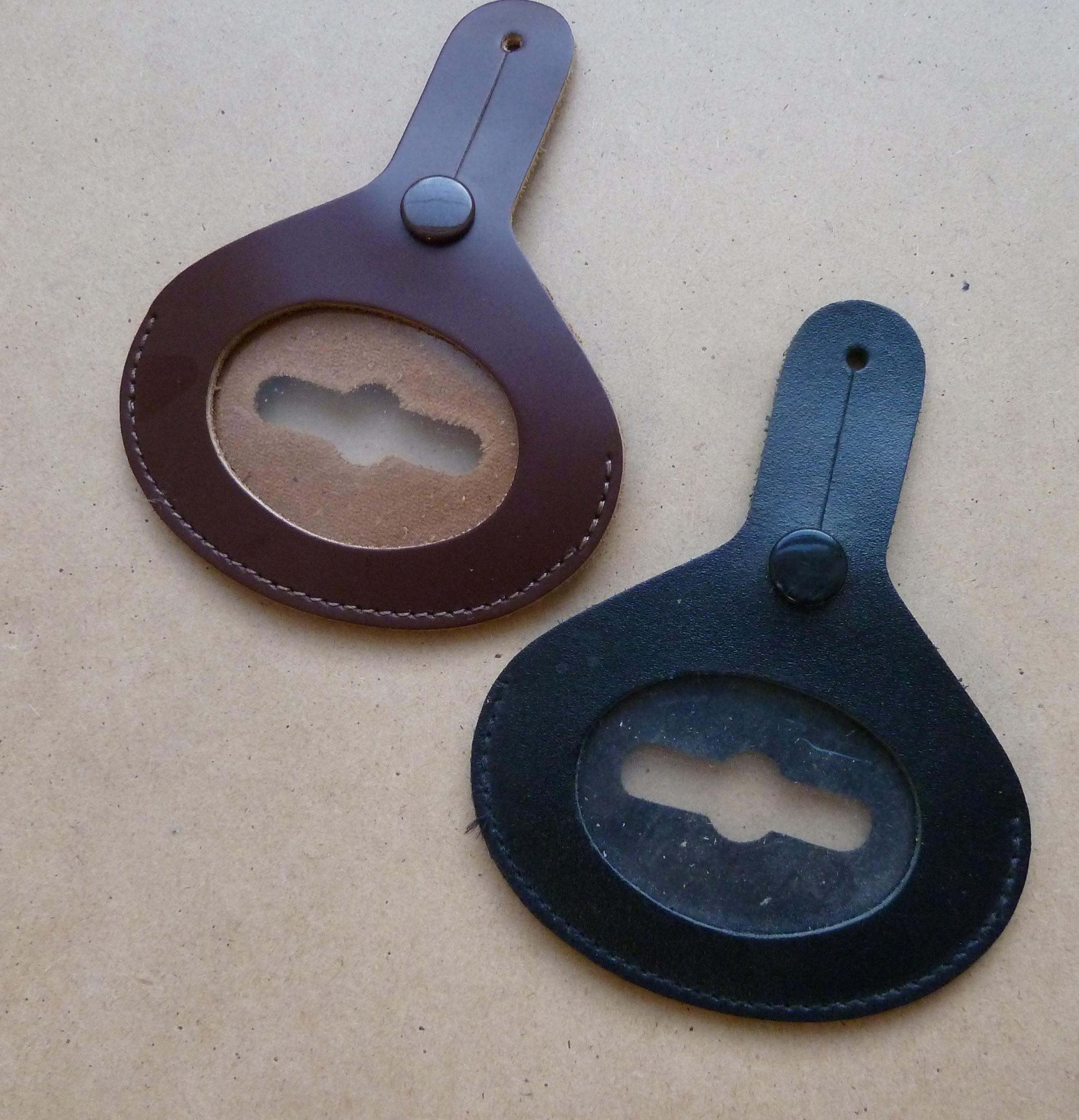 Taxi cabbie driver oval badge holder Leather holder for oval taxi cabbie driver badges with front plastic window.