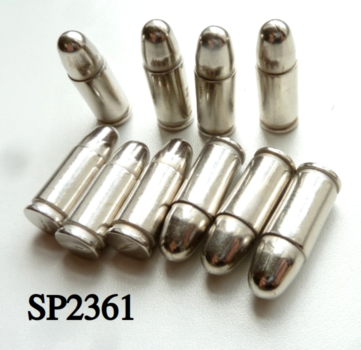 Cast 9 mm bullets Cast 9 mm rounds - plastic core with shiny steel effect aluminium coating.