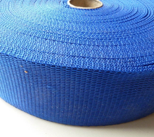 Bright Blue webbing Roll of 50 mm wide polypropylene webbing.