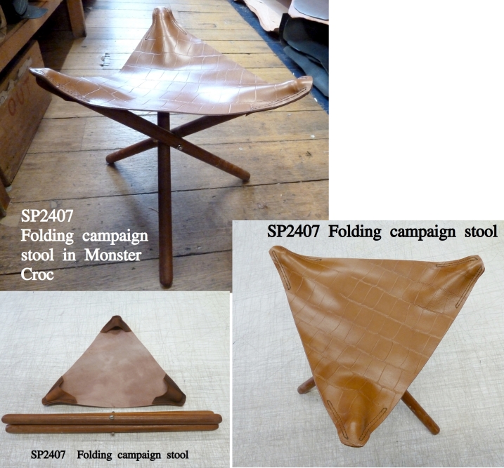Seat is in embossed Monster Croc split leather - durable and water resistant for outdoor use.Fully hand stitched with strong waxed & braided polyester thread.