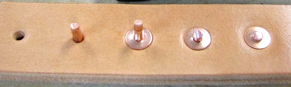 These copper rivets are more complicated to set and cruder in appearance but they are very strong and give a very old school look to your work.