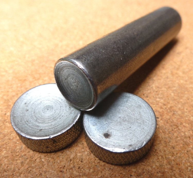 A small metal anvil is placed under the stem, the rivet setting tool is rested on the cap and hit firmly with a hammer - this mushrooms the stem head inside the cap to form a permanent bond.