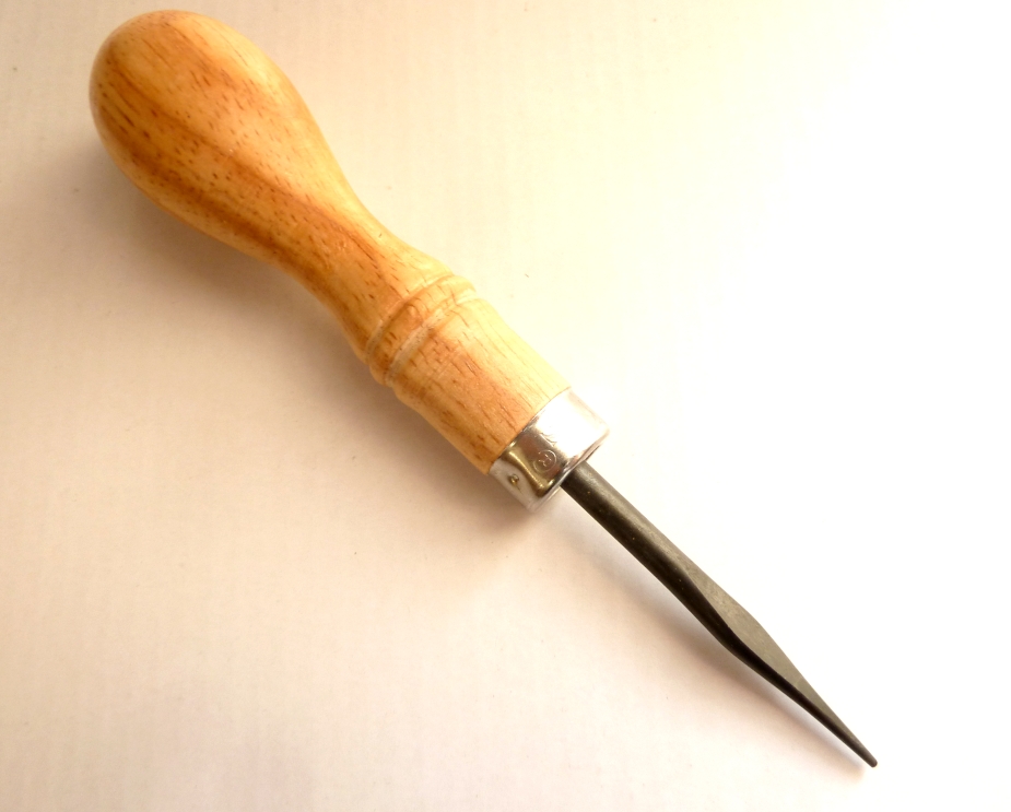 The tapered steel shank can be used to open up lacing holes, push thong through holes and plaited sections.